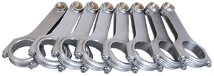 Forged 4340 steel H-Beam connecting rods are forged from a two-piece forging and feature a fully machined and shot-peened surface. Sizing is held to exact tolerances. Sold as a weight-matched set. Recommended for competition use.