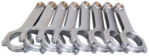 Forged 4340 steel H-Beam connecting rods are forged from a two-piece forging and feature a fully machined and shot-peened surface. Sizing is held to exact tolerances. Sold as a weight-matched set. Recommended for competition use.