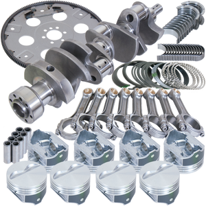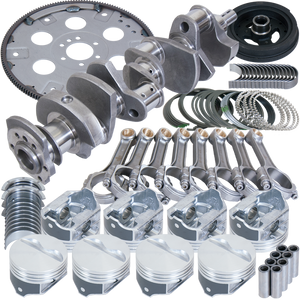 BALANCED 3.750" Cast Crank,5.700" I-BEAM Rods,3/8" ARP 8740 BOLTS,HYPEREUTECTIC KB CLAIMER -5CC FLAT TOP 4.040" PISTONS,PLASMA-MOLY STANDARD GAP RINGS,KING SI Rod/MAIN BEARINGS, DAMPER, AND 168 TOOTH FLEXPLATE.