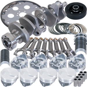 BALANCED 4.250" Cast Crank, 6.385" I-BEAM Rods,7/16" ARP 8740 BOLTS, HYPEREUTECTIC KB 17CC CLOSED CHAMBER DOME 4.310" PISTONS, PLASMA-MOLY FILE-FIT RINGS,KING SI Rod/MAIN BEARINGS.