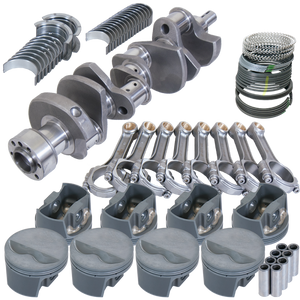 3.480" Cast Crank,5.700" I-BEAM Rods,3/8" ARP 8740 BOLTS, Forged 4032 MAHLE -5CC FLAT TOP 4.000" PISTONS,PLASMA-MOLY STANDARD GAP RINGS,KING SI Rod/MAIN BEARINGS.