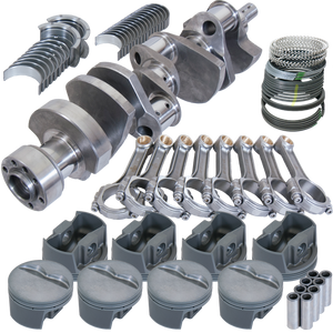 3.750" Cast Crank, 5.700" 5140 I-BEAM Rods,3/8" ARP 8740 BOLTS,Forged 4032 MAHLE -5CC FLAT TOP 4.040" PISTONS,PLASMA-MOLY FILE-FIT RINGS,KING SI Rod/MAIN BEARINGS.
