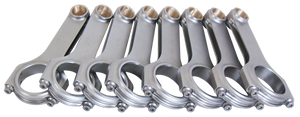 Forged 4340 steel H-Beam connecting rods are forged from a two-piece forging and feature a fully machined and shot-peened surface. Sizing is held to exact tolerances. Sold as a weight-matched set. Recommended for competition use.