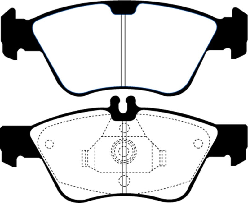 Designed for premium street driving offering better brake effect up to 600-degrees C (1100-degrees F). EBC Greenstuff has a high initial brake effect and gives drivers confidence from first application of the brake pedal. There is no such thing as a NO DUST pad. The very nature of how a brake works requires that some dust be generated to avoid rotor vibration (shimmying). The EBC pad creates less dust and dust is more easily washed off than most. All pads create more dust as they are bedding in especially if rotors are worn. Nominal friction coefficient 0.55. For heavier faster cars and vehicles above 200bhp we strongly recommend Redstuff which DOES offer much less dust.
