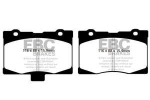 If you simply need a quality OEM replacement pad, look no further than Ultimax. Made in the UK Bristol EBC Brakes manufacturing plant Ultimax is a beautifully engineered brake compound that lasts well, produces minimal dust and is the perfect choice for the urban or daily driver. Why spend more if all you need is a quality replacement pad.The Ultimax pad does include a small percentage of steel fibre to achieve its price point, far less content than our competition where steel fibre content can attain 50 volume and this optimum fibre blend is what makes Ultimax both popular and unique amongst brake blends .Once bedded in Ultimax will inspire confidence in any car light truck or SUV no matter how you drive.Its universal heat range abilities and low rotor wear are additional benefits of the Ultimax pad range which is the EBC worldwide number one selling brake with numbers of sets sold running into tens of millions over the recent years. Unlike many of our performance grades Ultimax has remain unchanged as a pad compound for ten years now, a true testament to its success and customer acceptance. Why change a winning formula.Black coded in the EBC range EBC Ultimax is a fully ECE R 90 approved brake pad range and at its lower price point, less than HALF the price of original parts yet TOTALLY EQUIVALENT by nature of its R 90 brake safety approval, Ultimax offers great value for money and first class driving safety.When replacing brakes of any kind please remember how important brake safety is to your own well being and either have a professional mechanic install your new brakes or if you are a qualified mechanic use the EBC installation DVD as a guide in support of your vehicle owner's manual. These installation guide DVD tasters can be viewed here and the full DVD purchased from online vendors.