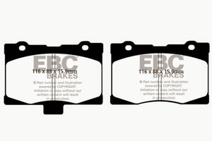 EBC Yellowstuff is an aramid fibre based brake compound with high brake effect form cold and is possibly one of the first ever compounds that can be used for STREET AND TRACK DRIVING. These pads do not require warm up but do get even stronger under the heat of hard driving. These are not a low dust pad and if your desire is for a low dust premium street use pad, you should consider EBC Redstuff.When considering full race use, Yellowstuff has been a strong favourite, having been used for two years in the Swedish Camaro Cup and at numerous other race events where a stock caliper system is fitted.It is also the choice of 90-percent of the Mazda MX5 Miata competitors in the UK race series and has an unblemished record as rotor friendly track pad for vehicles up to 2000 lbs weight or 200 BHP.In the USA the SCCA and NASA drivershave been testing Yellowstuff with feedback and good reports POURING in from a 543 test driver major market proving event with these groups. Read that figure again 543 test drivers.There is no guesswork here.