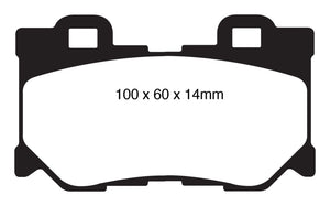Designed for premium street driving offering better brake effect up to 600-degrees C (1100-degrees F). EBC Greenstuff has a high initial brake effect and gives drivers confidence from first application of the brake pedal. There is no such thing as a NO DUST pad. The very nature of how a brake works requires that some dust be generated to avoid rotor vibration (shimmying). The EBC pad creates less dust and dust is more easily washed off than most. All pads create more dust as they are bedding in especially if rotors are worn. Nominal friction coefficient 0.55. For heavier faster cars and vehicles above 200bhp we strongly recommend Redstuff which DOES offer much less dust.