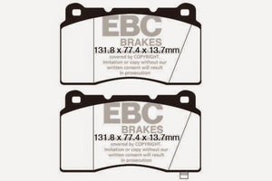 There are TWO reasons our customers love Redstuff, First because they are the lowest dust pad we have encountered by reducing dust by 60-90-percent. Plus the minimal dust you see is very easily removed with a simple sponge wash as it contains no steel fibre particles as in ALL OTHER pads. Second they brake like an alligator right from cold (as good as Original pads or better) and just get better as they heat up.This material is a Synthetic Fiber based brake compound enhanced with ceramic particles. If you have previously tried EBC redstuff (pre-ceramic compound) this material is light years ahead. It lasts longer; it brakes better and is quieter. Being a hard wearing pad, bed-in times can be as long as 1000 miles and drivers must be patient until the pad takes up the shape of their disc (brake rotor). This is a truly impressive fast road pad for repeated heavy braking.It emits far less dust than semi-metallic pads and has been proven to stop a passenger car/sedan/sport compact/hot hatch 13 metres quicker than OEM pads from 100mph/160kph. Features EBC Brake-In surface coating which conditions rotor surface and accelerates pad bed-in. Nominal friction coefficient 0.5 with approx. 50-percent dust reduction.Most EBC Red Ceramic pads are approved to ECE R90 brake safety regulation. Installation Instructions Installation Instructions Warranty