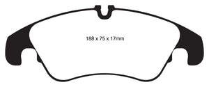 Designed for premium street driving offering better brake effect up to 600-degrees C (1100-degrees F). EBC Greenstuff has a high initial brake effect and gives drivers confidence from first application of the brake pedal. There is no such thing as a NO DUST pad. The very nature of how a brake works requires that some dust be generated to avoid rotor vibration (shimmying). The EBC pad creates less dust and dust is more easily washed off than most. All pads create more dust as they are bedding in especially if rotors are worn. Nominal friction coefficient 0.55. For heavier faster cars and vehicles above 200bhp we strongly recommend Redstuff which DOES offer much less dust.