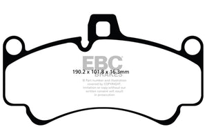 EBC Greenstuff 2000 series is a high friction pad designed to improve stopping power on sport sedans and prestige cars alike. The Greenstuff range emits less dust and feature the EBC brake-in surface coating to accelerate pad bed in.