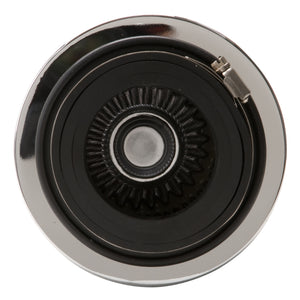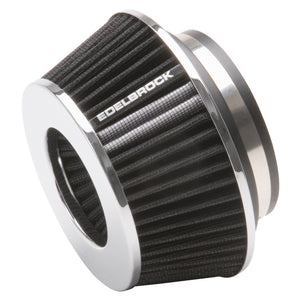 Edelbrock Universal Pro-Flo Conical Air Filter #43610 is an economical way to ensure your engine is getting clean air, without the expense of buying a new filter every few thousand miles. Its constructed for superior filtration and air flow performance. Features triple chrome plated trim for a show-quality look. Universal Fit Series is also designed with three inlet adapter rings for use on 3", 3.5" and 4" inlet tube systems. It also feature the Edelbrock exclusive Pro-Charge clean strip for easy maintenance. The Pro-Charge strip will let you know when it's time to clean your filter. Rated for use engines making less than 340 horsepower. Each filter comes pre-oiled and is washable and reusable. Use Edelbrock Pro-Charge Cleaning Kit #43600 to clean and re-oil.