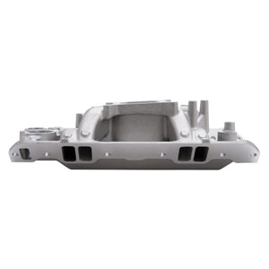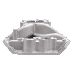 Edelbrock part #7530 RPM Air-Gap AMC intake manifold is designed for 1967-69 290-390 c.i.d. V8 applications. This RPM Air-Gap intake manifold incorporate the same race-winning technology as our Victor Series competition intakes. The air-gap design features an open air space that separates the runners from the hot engine oil for a cooler, denser charge and more power. Includes standard oil fill and PCV provisions as well as early air conditioning support bracket accessory bosses. For square-bore carbs. No provision for exhaust-heated chokes. No exhaust crossover.