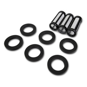 PN 8479 Clear View Element kit includes three 100 micron filter elements and six rubber end seals. The filters feature an attractive black frame that matches Edelbrock Clear View filters. Replacing the filter element is a simple task that ensures clean fuel is delivered to your carburetor, eliminating common contaminant related drivability issues. The elements also fit Mr. Gasket® clear view filters