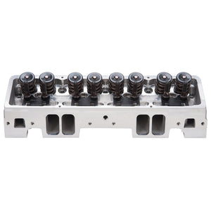 Edelbrock part #61259 Victor Jr. 23deg 220 cylinder head is designed for small-block Chevy Its 64cc combustion chamber yields around 10:1 compression ratio in a typical flat-top application and about 12.5:1 when used with some of the most common 12cc dome pistons. One of the key features of the Victor Jr. 23deg 220 cylinder head is the CNC machined chambers and bowls, which result in consistency and improved performance. They also feature angled spark plug holes and maintain the stock 23deg valve angle as well as the intake flange bolt pattern for use with 1986 and earlier intake manifolds. All of this allows this cylinder head to deliver 530-580 hp potential right-out-of-the-box, making them ideal for a budget minded engine build desiring a high quality cylinder head that still uses a stud and guide plate rocker system. Cylinder Head Specifications: - Exhaust port location: Raised .300" - Spark plug fitment: 14mm x .750 reach, gasket seat
