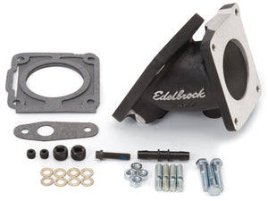 The Edelbrock 38353 adapter kit is required to install our Performer 5.0 PN 3821 or Performer RPM PN 7126 in 1994 and 1995 Mustangs. The 1994-1995 throttle body has a different bolt flange and idle air motor than 1987-1993 models. It is also swung out 50 Deg and dropped 1 degree from its previous location. The 38353 locates the throttle body in the stock location and accepts the stock vacuum fitting. Testing on our 1994 Mustang showed a .4 second improvement in 10-70 MPH with our 3821 and 70mm throttle body vs. stock. Warranty Installation Instructions