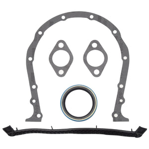 Edelbrock part #6998 Front Timing Cover Gasket set for Big-Block Chevy. Includes front cover gasket and front seal.