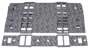 Edelbrock Intake Manifold Gasket set for Small-Block Chevy engines with 2814 intake manifold & GM cast iron bowtie vortex cylinder heads. These gaskets are .060 thick and are a package of 10 sets.