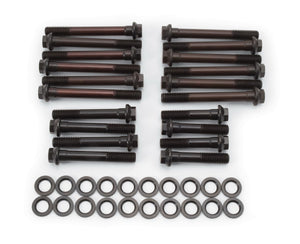 The Edelbrock #8561 bolt kit contain a complete set of the highest quality head bolts and hardened washers available. Cold-formed to ensure molecular integrity and heat treated prior to thread rolling and machining. Reduced diameter bolt heads eliminate the need for valve train removal to facilitate cylinder head re-torqueing. Hardened and parallel-ground washers are included. Rated at 170,000 p.s.i.
