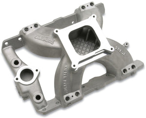 Edelbrock part #29575 Victor Pontiac EFI intake manifold is designed for use with 389-455 EFI competition engines. It is ideal for drag racing (Super Stock, Super Gas, Super Comp, Brackets, etc.), marine or any application requiring maximum power up to 7500 rpm. Compatible with standard Pontiac cast iron heads, or use with Edelbrock Performer RPM Pontiac aluminum heads for maximum power. Port exit size at head is 1.08" x 2.10" with enough material to open it up to larger port openings. This intake manifold is machined for use with 4150 series carburetors and throttle bodies.