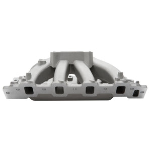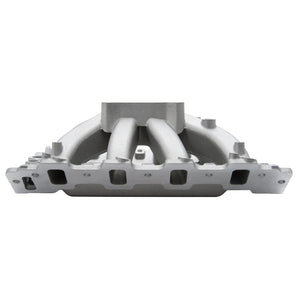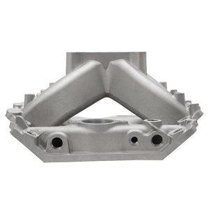 Edelbrock part #2894 Victor Jr. Holden intake manifold is for use with competition 355+ c.i.d. Holden V8 engines that utilize the 1988-98 Holden VN cylinder heads. This intake manifold is a single-plane design that is tuned for maximum air flow from 3500 to 7500 rpm. It features a taller design with long tapered runners for a broad operating rpm range. Will fit both stock 1988-1998 EFI style cylinder heads and the Edelbrock Holden VN RPM cylinder heads. It also features a 4150 flange for use with square-bore carburetors and throttle bodies. Includes extra material for porters to modify for use with 4500 series applications. The water outlet is machined for use with a small-block Chevy waterneck.