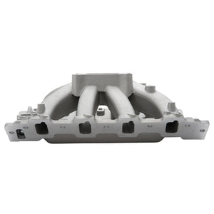 Edelbrock part #28945 Victor Jr. Holden EFI intake manifold is for use with competition 355+ c.i.d. Holden V8 engines that utilize the 1988-98 Holden VN cylinder heads. The Victor Jr. Holden is a single-plane design that is tuned for maximum air flow from 3500 to 7500 rpm. It features a taller design with long tapered runners for a broad operating rpm range. Will fit both stock 1988-1998 EFI style cylinder heads and the Edelbrock Holden VN RPM cylinder heads. It also features a 4150 flange for use with square-bore carburetors and throttle bodies. Includes extra material for porters to modify for use with 4500 series applications. The water outlet is machined for use with a small-block Chevy waterneck.