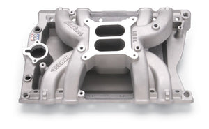 Edelbrock part #7551 Performer RPM Air-Gap Oldsmobile 455 intake manifold is intended for aggressive street/ strip big-block Oldsmobile applications. Designed to optimize horsepower production from 1500 to 6500 rpm, this manifold will perform best with engines that have an aggressive camshaft profile that will take advantage of the increased flow this manifold can provide. This intake manifold features our popular Air-Gap design that separates the runners from the hot engine oil, resulting in a cooler, denser air charge for more power. This manifold is compatible with stock heads, but has been designed to work with our RPM cylinder heads #60519 for optimal performance. Not compatible with EGR or spread-bore carburetors.