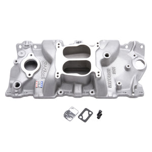 Edelbrock part #2101 Performer intake manifold is designed for street 1955-86 small-block Chevys. Edelbrock's Patented Dual-plane, low-rise design with a 180-degree firing order greatly improves torque over a wide rpm range for excellent throttle response from off-idle through 5500rpm. The Performer intake manifolds are ideal for passenger cars, trucks, 4x4s, tow vehicles and RVs. Not for 1987 and later cast iron or Chevy Bowtie heads. Will fit 1987 and later stock aluminum heads.