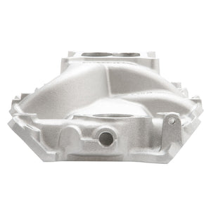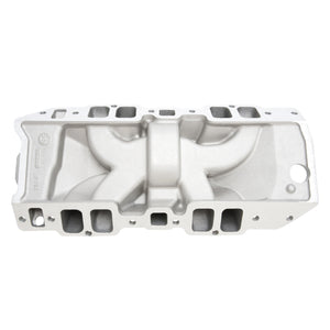 Edelbrock part #7163 Performer RPM 2-R intake manifold is designed for street 396-502 c.i.d. Chevrolet V8's with high-performance rectangular-port cylinder heads. This dual-plane high-rise manifold offers maximum horsepower with a broad torque curve. No provisions for exhaust heated chokes. Accepts late-model waterneck, air-conditioning, alternator and HEI equipment. Installation Instructions Warranty Installation Instructions