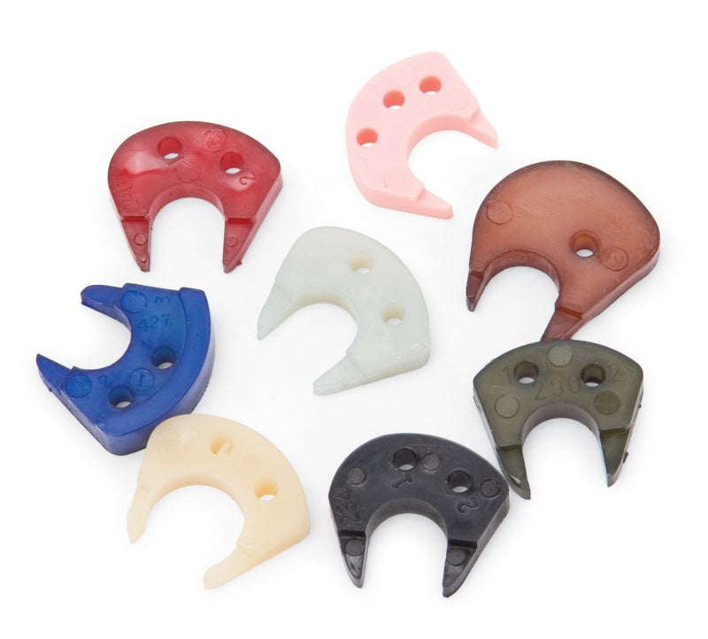 The Edelbrock #12403 Accelerator Pump Cam Kit Assortment Package of 8. These accelerator pump cams will have different shapes and profiles, allowing you to fine tune the accelerator pump's performance to the engine's requirements. Cam "lift" will directly affects the accelerator pump stroke and pump capacity. ?While the cam ramp profile and/or shape will control the "timing" of the shot. Each kit comes with 8 different accelerator pump cams and will fit Holley 2300, 4150 and 4160 carburetors. ?