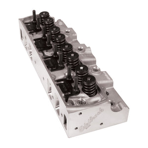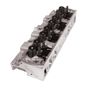 Intended for installation on 1965-1976 Small-Block Oldsmobile 350-403 c.i. engines equipped with a flat tappet camshaft, these 356-T6 aluminum casting cylinder heads (PN61039) are a modern refinement to our PN6051 heads, except they can accommodate a factory-style mechanical fuel pump. A smaller 68 cc combustion chamber achieves a more appropriate small block compression ratio compared to our PN61025/61029’s larger 77 cc chamber, which yields a lower compression ratio than most engine builders desire on a small block engine. These heads require a 3.9375” minimum bore and feature a modern chamber design with optimized spark plug positioning. Maximum airflow is achieved through the factory 6-degree valve angle using high-flow 200 cc intake and 130 cc exhaust port volumes, along with 2.072” intake and 1.680” exhaust valve sizes in their O.E. positions. A finished deck thickness with added material above the intake port and pre-counterbored head-bolt holes for .5” diameter studs provide extra clamping force in key areas. A stud-and-guide plate valvetrain system (as opposed to the O.E. pedestal type) provides a solid foundation for the beefier diameter pushrods, and Helicoil inserts in the exhaust and rocker stud holes keep bolts secured. However, there are no provisions for a heat crossover. Although these heads will fit on Big-Block Oldsmobile engines, the 68-cc combustion chamber size is not ideal for a big-block application as it will raise compression. See PN 61025 and PN 61029 for big-block specific cylinder heads.