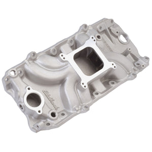 Edelbrock part #5061 Torker II 2-O intake manifold is designed for street 396-502 c.i.d. Chevy V8's with large oval-port cylinder heads (1975 and earlier). Manifold not equipped with EGR. Will not fit "tall block" V8 engines. The Torker II 2-O intake manifold is a singe plane low rise intake that's great for high performance applications that have limited hood clearance. The manifold has an exhaust crossover for easy cold weather warm-ups, but no provisions for exhaust heated chokes or EGR. Customers will need either electric or manual choke carburetors. Not for heavy vehicles (trucks, vans etc.); use Performer 2-O #2161.