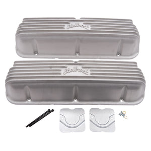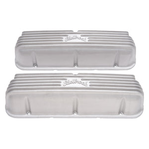 Edelbrock part #41609 Classic Series Valve Covers are designed for Ford 221?351W V8 1962-95 applications and have a Satin finish. Edelbrock first made these aluminum valve covers in the late '50s and they're still a classic. Made of heavy-gauge sand-cast aluminum, Overall height is measured from base to top at the highest point. Edelbrock classic valve covers can be machined to accept breathers if desired.