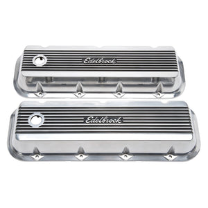 The Edelbrock #4275 Elite II Valve Covers are designed for Chevy Big-Block V8 1965 & Later applications. This new line of Elite II valve covers feature a design that is influenced by the original Elite Series originally released in 1985, but with a new modern take on this classic look. They're made from heavy-gauge, die-cast aluminum and are finished off with a show quality high luster polished finish. The raised fins are accented by a contrast gloss black finish between the fins for the definitive Elite Series look. Our tall profile valve covers are 2" taller than stock, and clear most roller rockers and valvetrain components. Our low profile valve covers clear all air-conditioning, alternator brackets and aluminum rockers. Overall height is measured from gasket flange to top at the highest point.