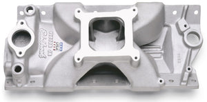 Edelbrock part #2975 Victor Jr. intake manifold is excellent for many applications from drag to circle track racing. This intake manifold provides maximum performance for engines with standard port location, iron and aluminum cylinder heads. The low-profile of the #2975 works well in applications with minimal hood clearance and where 1" or 2" spacers can be used for performance tuning. When carb spacers are not allowed, the #2999 should be used. The Edelbrock Victor Jr. #2975 is a single-plane, high-rise intake designed for maximum race-winning power at higher engine speeds. Installation Instructions Warranty Installation Instructions