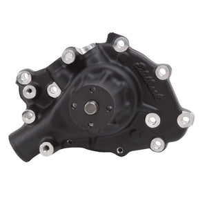 Edelbrock #88413 Water Pump Ford 5.0l 1965-68 289, 1968-69 351w black ideal to prevent overheating in street rods and street machines, as well as in tow rigs and motorhomes. Using state-of-the-art racing technology, Edelbrock has designed these "super cooling" Water Pumps to provide maximum flow, maximum pressure and equal distribution to both sides of the block within 1%. Available for most popular applications, these high performance pumps flow in only one direction for optimum efficiency. The casting's computer-designed internal passages and precision powdered metal impeller produce the maximum flow rate possible.