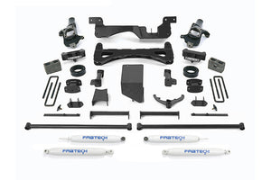 Our 6in system for 2001-10 GM HD's has been designed to provide superior suspension performance for daily driving or for offroad. This is accomplished using our proven one piece lower control arm crossmembers and extended length steering knuckles with a multitude of shock absorber options. The 1/4in thick arched lower control arms crossmembers include an integrated front differential skid plate, crossmembers support tubes and rear impact struts to distribute front suspension impact loads through the frame evenly. A new knuckle design was introduced in 2007 with this system that provides reduced track width to keep the tires under the fenders. This system also includes torsion bar drop mounts, extended length sway bar links with urethane bushings, front and rear bump stop brackets, and rear blocks.