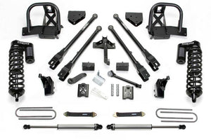 At the top of our Super Duty line is our famous 4 Link System that provides unsurpassed articulation and wheel travel. Large 2'' OD heavy wall links feature race style 1'' Uniballs for superior strength. Thick 1/4'' steel brackets secure the 4 Links to the frame without cutting or welding. This 4 Link system comes with our Dirt Logic 4.0 Stainless Steel Coilover Shock conversion. Also included are Billet Sway bar links, Trac Bar relocation bracket, Pitman Arm and more. Rear lift includes a block & u-bolt kit. Includes rear 2.25 Dirt Logic Stainless Steel shocks.