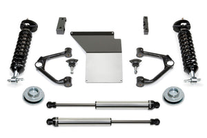 The 4" Budget System for GM C/K1500 SUV's provides a mild lift height with a supple ride for use with 33" tall tires for the value minded enthusiast. Fabtech's replacement DOM upper tubular control arms feature heavy duty extended range ball joints that provide additional strength to the front suspension. The new ball joints provide unrestricted movement throughout the suspension travel range for smooth operation. On 4WD models the front differential housing is relocated to keep CV angles proper with the new ride height while a 1/4" thick steel skid plate protects the front diff. The rear lift comes from a 1 1/2" Coil Spacer system. For increased damping this system comes with high end Dirt Logic 2.5 Coilovers for the front and Dirt Logic 2.25 shocks on the rear.