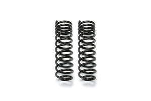 2007-18 Jeep JK 4WD 2-DOOR. These American made coil springs are a true Dual Rate design allowing for long travel suspension use offroad with a smooth highway ride. In the first stage of the spring they provide a soft ride with the ability to extend for long travel range. The second stage is designed to handle the payload of the vehicle and address large impact absorption at higher speeds. These Dual Rate Long Travel springs have been designed in conjunction with all Fabtech suspension systems and shocks to eliminate the need for spring retainers or limiting straps. They stay seated though out the suspension travel and articulation range. Features: True Dual Rate Long Travel design. Comfort ride with carrying capacity. Allows for maximum articulation and travel. American made quality. 5in Rear Long Travel Coil Springs.