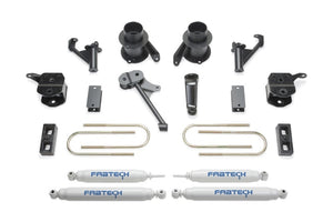 This high quality system has been designed to retain the factory load carrying capacity and ride of the vehicle with minimal parts. The stock coil springs are retained with angular steel spacers to retain the factory spring bow. This is an important feature as Chrysler designed the bow to aid in handling and ride. Flat spacers do not provide this. The factory Radius Arms are relocated with heavy duty 1/4in thick steel brackets for proper caster. A Track Bar drop bracket centers the axle under the vehicle. A Fabtech exclusive on this system is the steel front bump extensions. They will not blow out like long urethane bump stops found in other aftermarket suspensions. No chance of spring and shock damage with the Fabtech'steel extensions. The rear suspension receives a block and u-bolt system with bump stop extensions. The 5in Basic System will clear 37in tall tires and includes Fabtech Performance Twin Tube shocks. Estimated installation time - 4 hrs. 9 holes to drill for installation. No Welding Required.