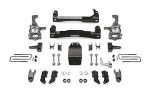 Fabtech's new 4? System for the Ford Raptor provides increased suspension height to allow use of 37? tall tires while retaining the factory SVT control arms and Fox Shox. The system features heavy duty ductile iron steering knuckles designed to handle 37? tall tires with the vehicle?s ESC (electronic stability control) and Traction Control. Typically 37? tires will cause steering and brake issues on the factory Ford steering knuckles. Fabtech knuckles are designed for the oversized tires and will provide years of trouble free service. The Raptor SVT control arms are relocated with 1/4? thick steel Crossmembers retaining the travel features of the vehicle for offroad use. The factory Fox Shox are also retained with super stout front and rear shock extensions. To keep the front CV angles proper with the new ride height the front differential is relocated and comes with a 1/4 ? thick steel skid plate for protection.