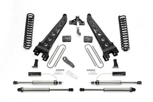 Fabtech?s Radius Arm system for the Ford Super Duty is built to handle the on and offroad demands of the truck enthusiast. This system is a complete upgrade to the factory suspension and will provide additional strength for use with oversized tires. The heart of this quality system is Fabtech?s tubular Radius Arms. The design of these arms comes from Fabtech race components built with a tubular structure reinforced by a dimple die side plate and heavy gusseting for rugged offroad use. They are an outstanding upgrade to the stock stamped arms. This Radius Arm design has been proven in over 10 years of service in military applications. High quality components with properly designed suspension geometry is what sets this system apart from all other Radius Arm suspensions. System includes a free 5 year 60,000 mile powertrain warranty. Include with this system is Dirt Logic 2.25 Stainless Steel reservoir shocks in the front and non reservoir shocks in the rear. These Dirt Logic shocks have been ride tuned to the vehicle with the Fabtech Coil Springs and oversized tires for an excellent ride quality both on and offroad. Each Fabtech component has been designed with specific features and benefits that create this quality suspension system.