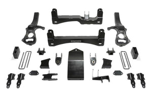 Exclusive to the GMC Denali is GM's Adaptive Ride Control (ARC) shock absorbers. These shocks are electronically controlled and adjust to various road conditions within milliseconds giving an exceptional ride quality both on and offroad. Fabtech retains these quality ARC shocks in their 6" Basic System for the GMC Sierra 1500 Denali with heavy duty relocation brackets. In designing this system, Fabtech engineers focused on building a system that has zero bump steer throughout the suspension cycle. This is key in reducing driver fatigue while improving the overall drive ability of the vehicle. The near stock track width was accomplished to keep oversized tires under the fenders for a clean appearance. Fabtech's proprietary steering knuckle geometry provides excellent lock to lock turning radius to help you maneuver in tight spots. Heavy duty 1/4" thick steel crossmembers feature OE style alignment cam pins that utilize the factory cams for quick easy adjustment. Triple front diff mounts reposition the differential for vibration free operation at high speed. Rear lift is accomplished by removing the factory 2" block and replacing it with a 5" Block and u-bolt system. Fabtech has addressed all aspects of this Denali suspension for proper ARC shock compatibility with the new 6" lift height. This quality system comes with a free 5 year 60,000 mile Powertrain Warranty.
