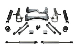 This system offers increased ride height utilizing the factory suspension components with heavy duty bracketry. High quality Dirt Logic shocks are included to enhance the damping capacity of the vehicle for offroad use while providing a superior on road ride quality. The system feature Fabtech's proven IFS technology with extended length ductile iron steering knuckles for proper electronic stability control functionality. Heavy duty 1/4in thick steel lower control arm crossmembers provide superior ground clearance for adventurous offroad trails. Rear lift is accomplished with steel coil spring spacers that utilize the factory coil springs for proper load capacity and a great highway ride. The Performance lift kit includes Fabtech's legendary stainless steel Dirt Logic 2.5 Coilovers and rear Dirt Logic 2.25 shocks for outstanding damping capacity with a superior highway ride. CROSSMEMBERS: 1/4in thick steel lower control arm crossmembers are arched for maximum ground clearance. Four adjustable alignment cams provide a wide range of adjustment. The fully welded box design of these crossmembers provides additional strength to the front suspension. STEERING KNUCKLES: Extended length ductile iron steering knuckles retain near stock track width keeping the tires under the fenders. These steering knuckles are designed to work in conjunction with the factory ESC for proper functionality at all speeds. FRONT DIRT LOGIC 2.5 COILOVERS: Constructed of a stainless steel body and NitroSteel piston rod these 6in lift Coilovers are the finest quality on the market. Extensive ride work was performed to ensure a superior ride on and offroad. Outstanding damping for offroad. SWAY BAR BRACKETS: Heavy duty drop brackets retain the factory link ends at the correct angle for a positive road feel without creating binding at full droop. REAR COIL SPRING SPACERS: Steel rear spring spacers utilize the factory coil springs retaining the stock load carrying capacity and ride comfort. REAR TRACK