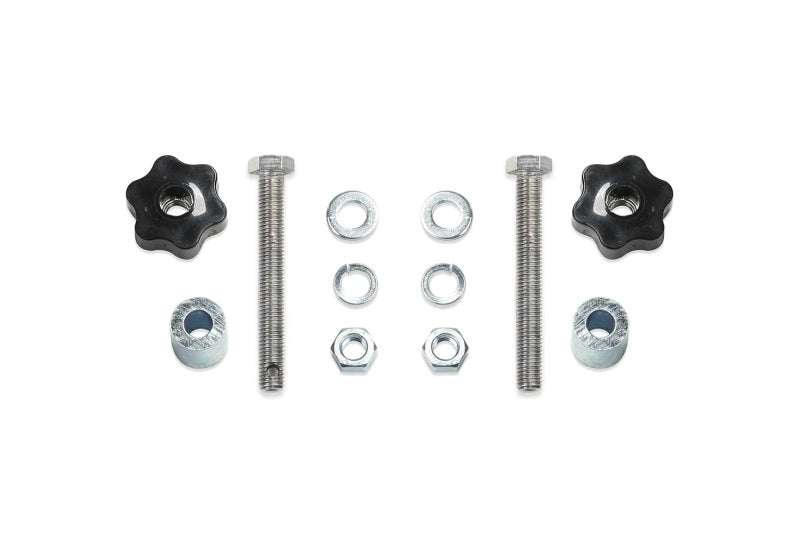 Heavy duty mounting hardware securely fastens a 42 in. tall Hi-Lift jack to the back side of the Fabtech Cargo Rack for the Jeep Gladiator. Large clamping knobs allow for a quick on and off feature. The mount allows for the installation of a small padlock (not included). Mount only. Hi-Lift jack not included.