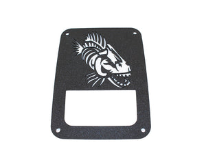 Upgrade your Wrangler's rear with Fishbone Offroad's aluminum Tail Light Covers. Laser-cut logo illuminates when braking.