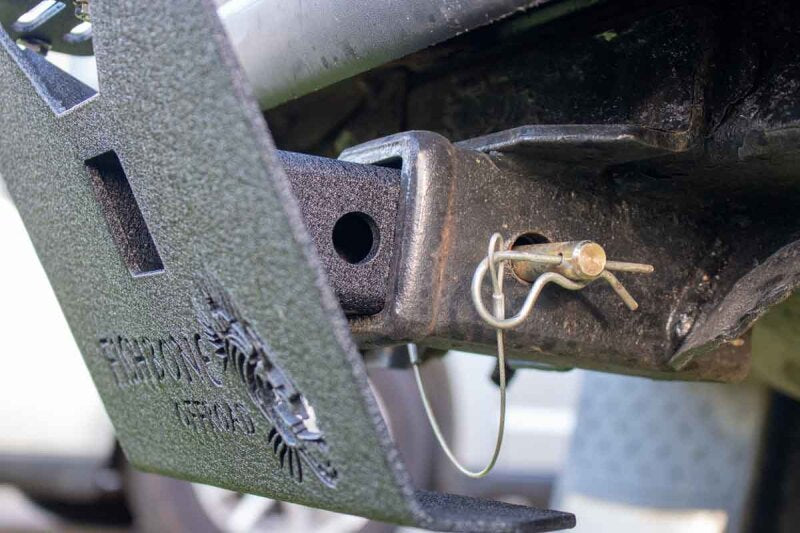 Fits any 2" receiver hitch. Hitch Pin NOT Included. Black powder coated, cold-rolled steel. Step Plate rests 2" above the hitch. Don't step on your bumper to access items on the top of your Jeep or the bed of your Truck.