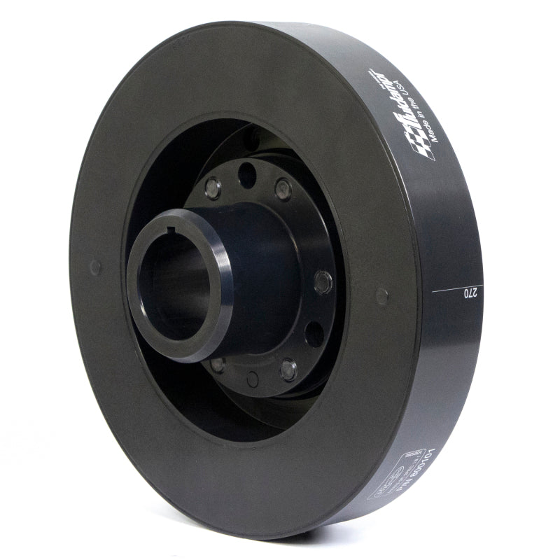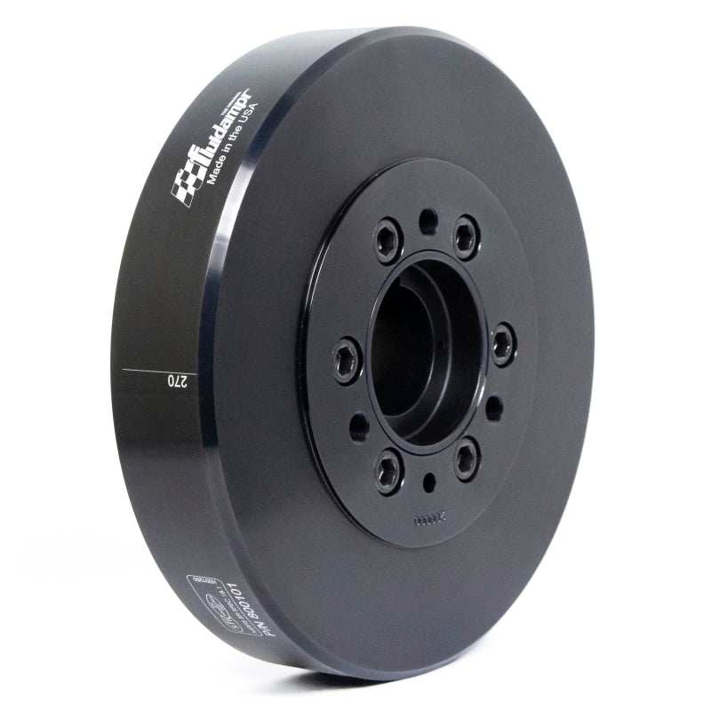 Protect your engine. Modifications can compromise your stock harmonic balancer. Install a Fluidampr performance damper early for best durability. Superior viscous damper design controls harmful torsional vibration across the entire rpm range. Reduce wear on engine components. Reduce risk of crankshaft failure. Improve timing. Unleash lost torque and horsepower. Precision CNC machined and balanced high-grade steel components. Corrosion resistant black zinc finish with engraved timing marks. No maintenance required. Trusted by leading engine builders worldwide. SFI 18.1 certified. Made in USA.