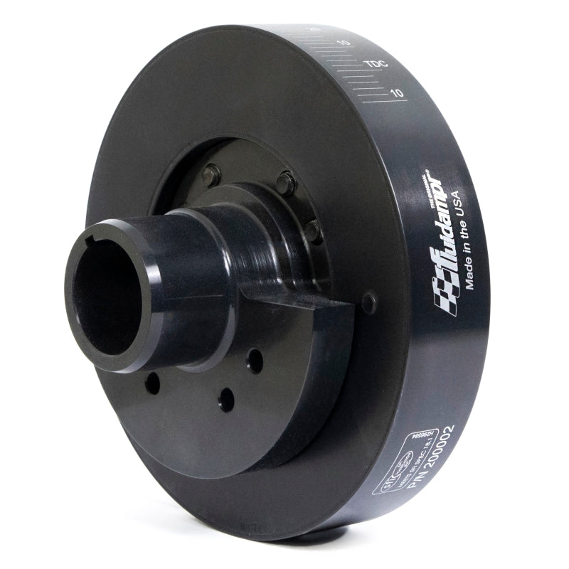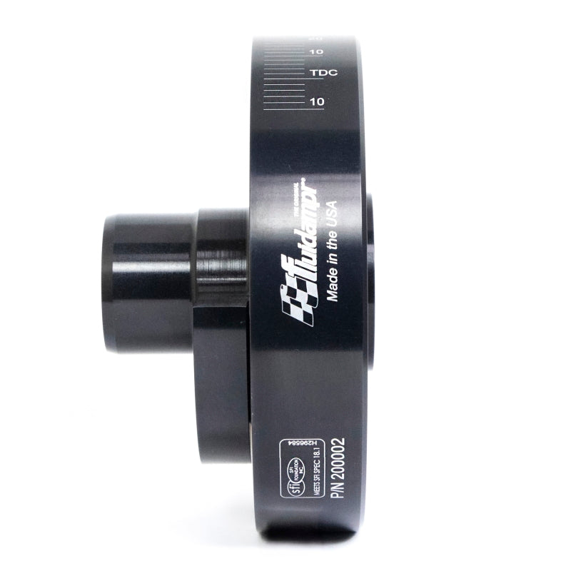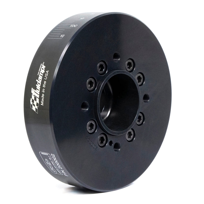 Protect your engine. Modifications can compromise your stock harmonic balancer. Install a Fluidampr performance damper early for best durability. Superior viscous damper design controls harmful torsional vibration across the entire rpm range. Reduce wear on engine components. Reduce risk of crankshaft failure. Improve timing. Unleash lost torque and horsepower. Precision CNC machined and balanced high-grade steel components. Corrosion resistant black zinc finish with engraved timing marks. No maintenance required. Trusted by leading engine builders worldwide. SFI 18.1 certified. Made in USA.