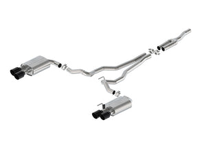 - Upgrade the appearance and sound of your non-active dual tip exhaust Mustang with this full Cat-back exhaust package featuring quad 4" black chrome plated stainless steel tips and GT quad tip valance